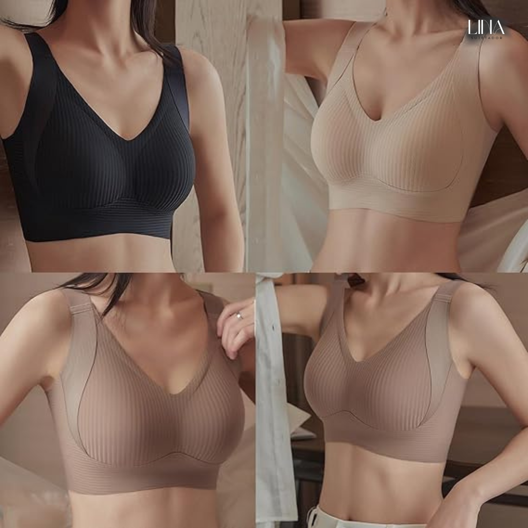 Desfrute de liberdade total com nosso sutiã sem aros e costuras, proporcionando conforto o dia todo. Diga adeus ao incômodo dos aros e sinta-se livre para se mover com confiança e estilo, sem abrir mão do suporte e da segurança.